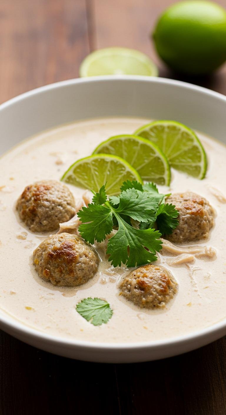 Indulge in the creamy comfort of this decadent version of albondigas soup.