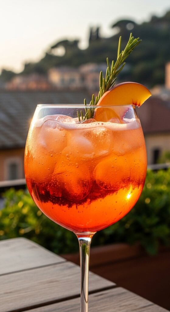 - Mix Aperol, Prosecco, and peach nectar.