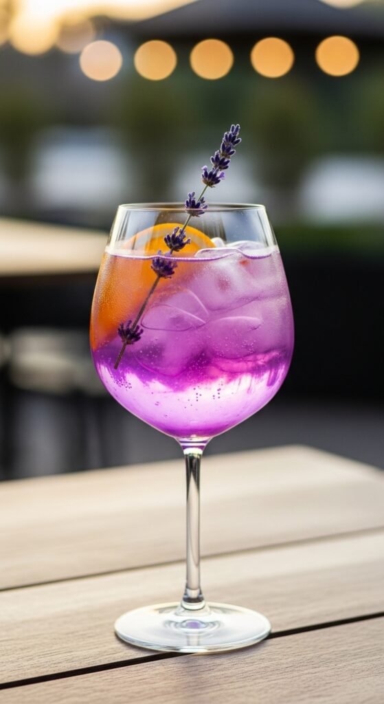 - Stir well and garnish with edible lavender.