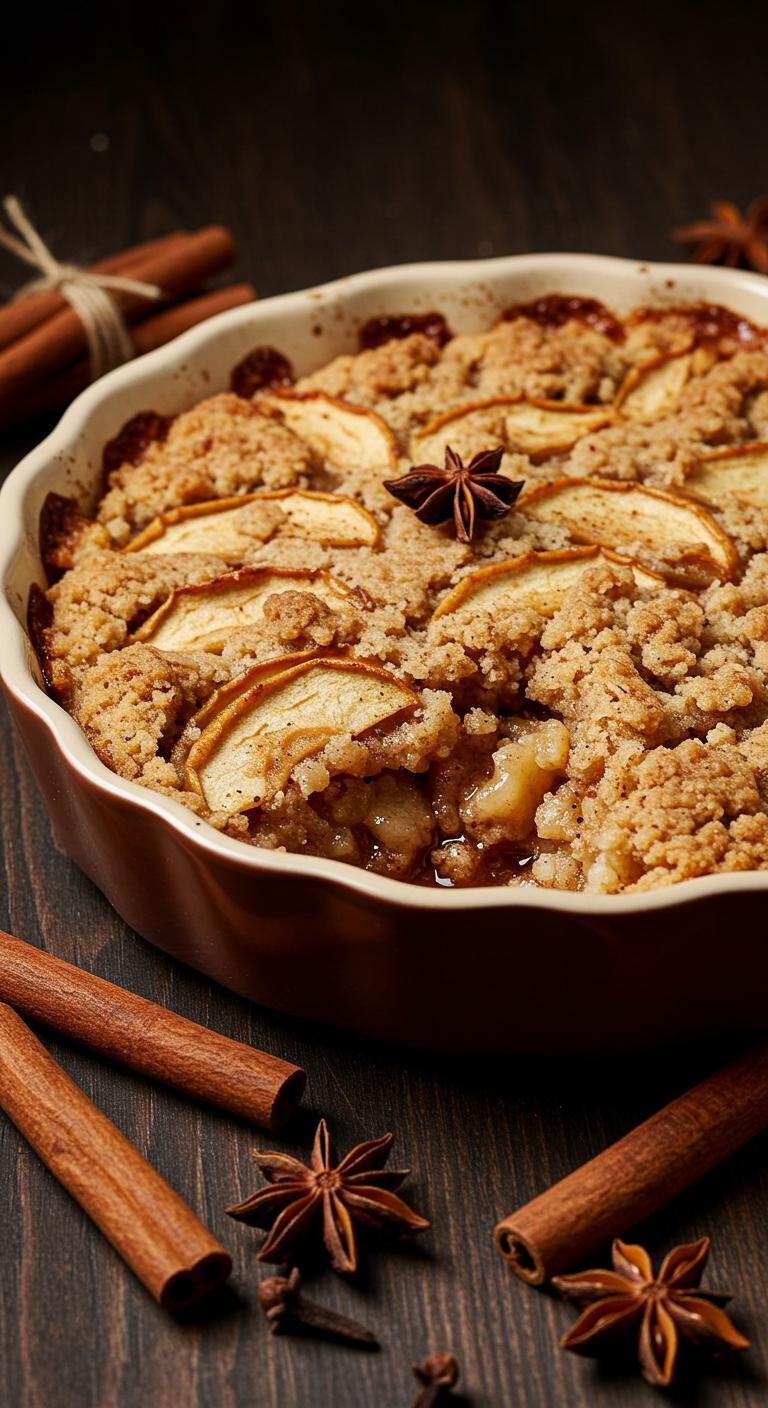 - Toss sliced apples with ginger and nutmeg, then place in a baking dish.