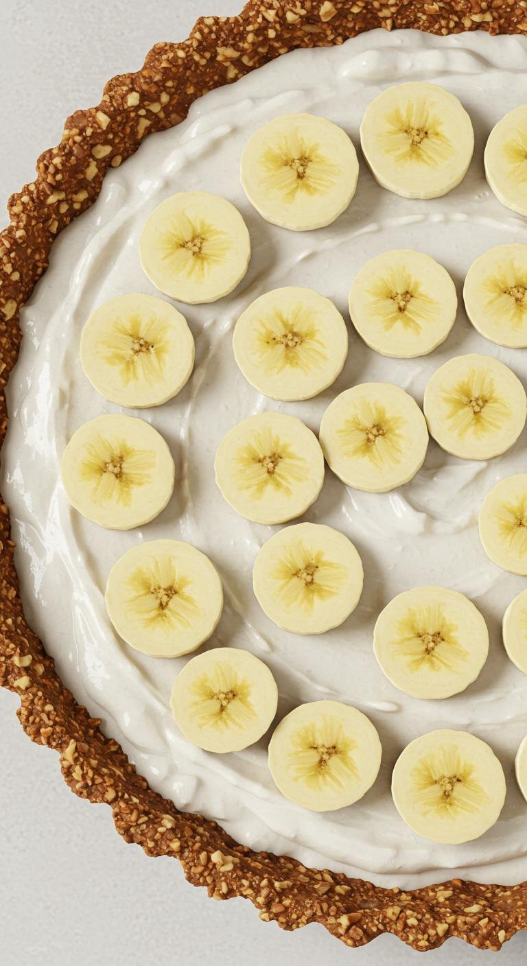 - Layer banana slices in the crust and pour the coconut mixture on top. Chill to set.