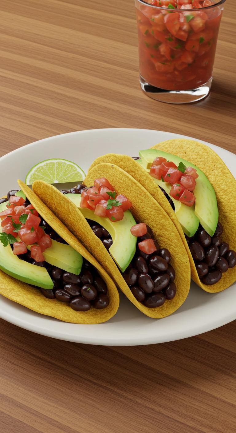 - Fill taco shells with beans, avocado, salsa, and lettuce.