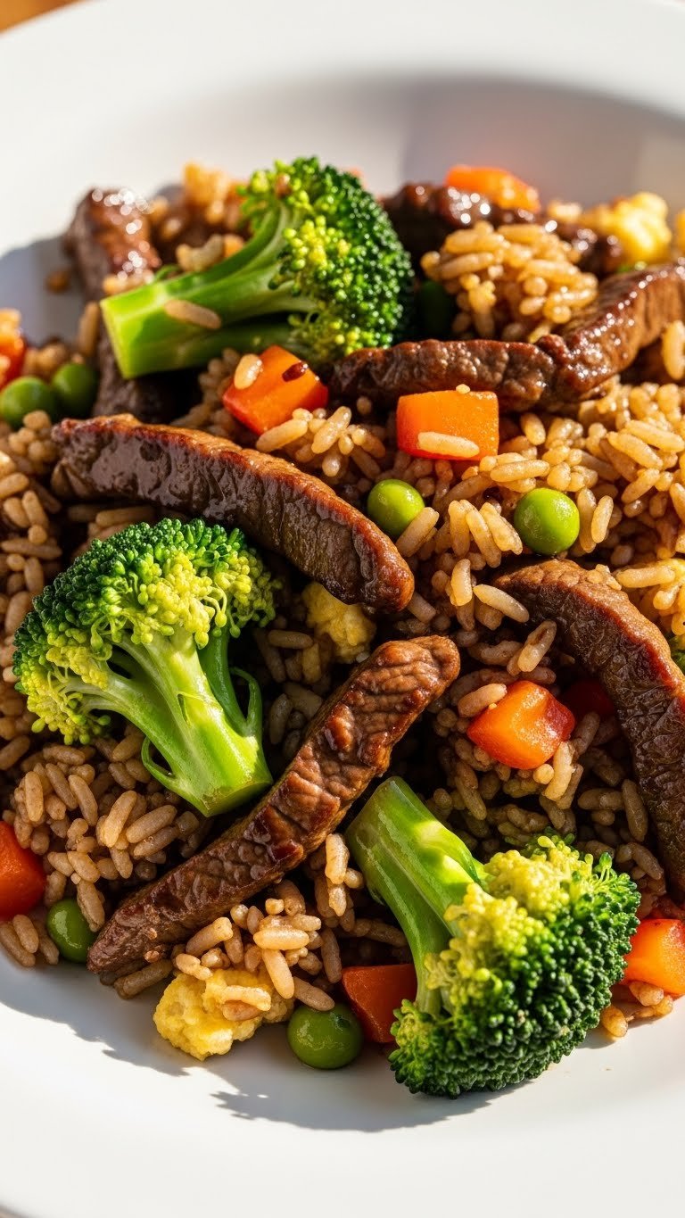 - Stir-fry beef and broccoli, then mix in rice, eggs, and sauce until heated through.