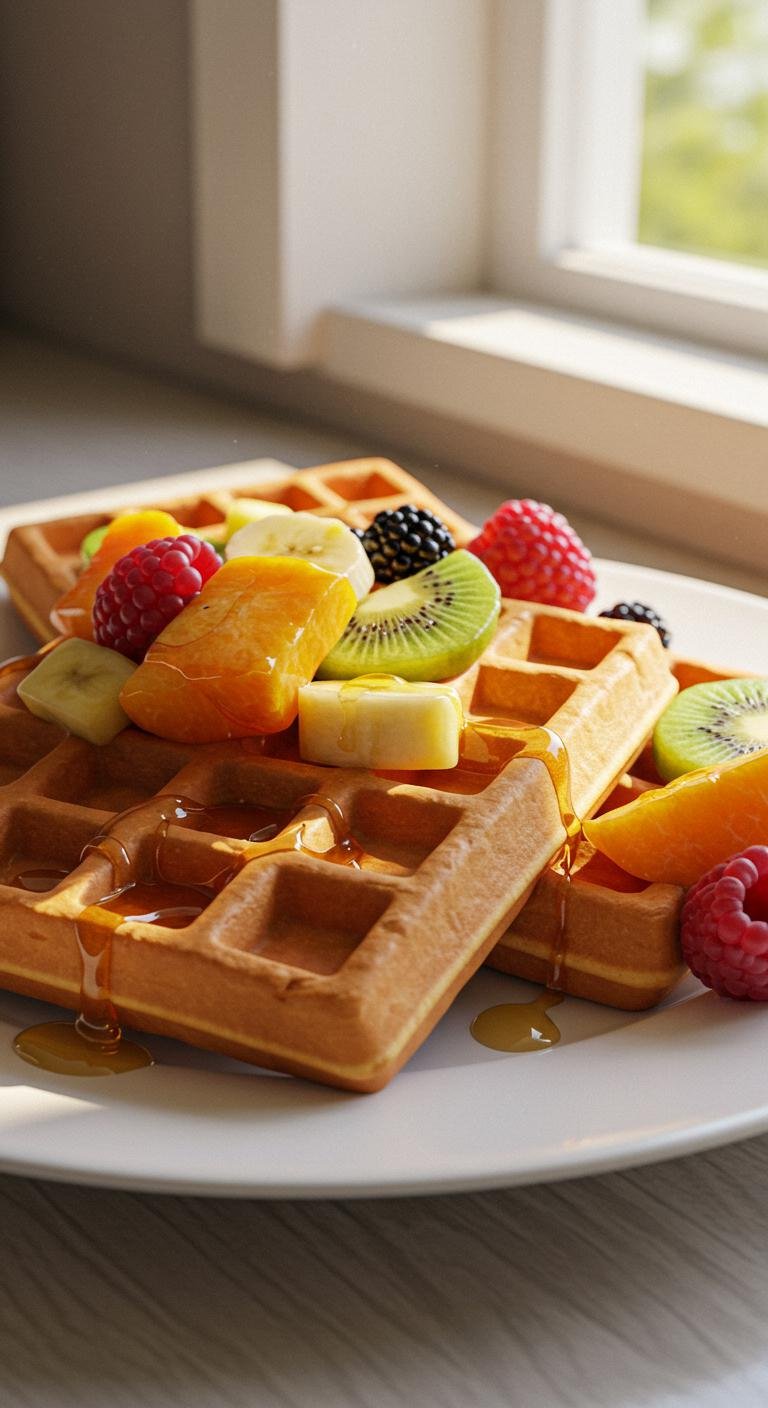 - Prepare classic waffles, and top with fresh fruits and honey.