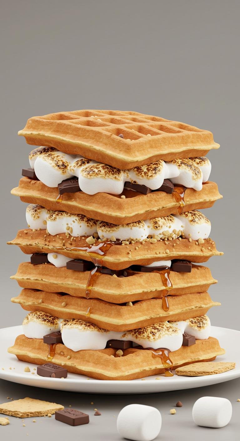 Enjoy the taste of campfire s’mores on your waffles!