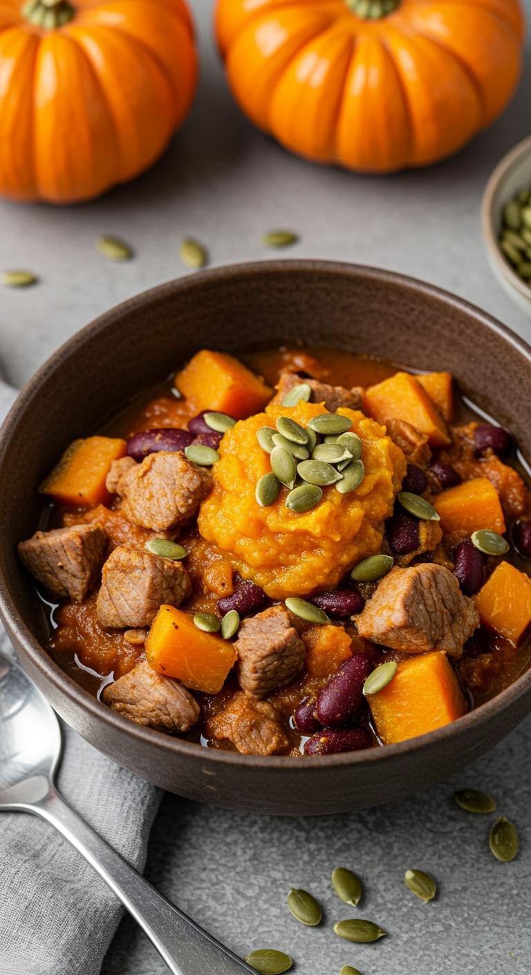 - Stir in pumpkin, beans, tomatoes, and chili powder. Simmer for 40 minutes.