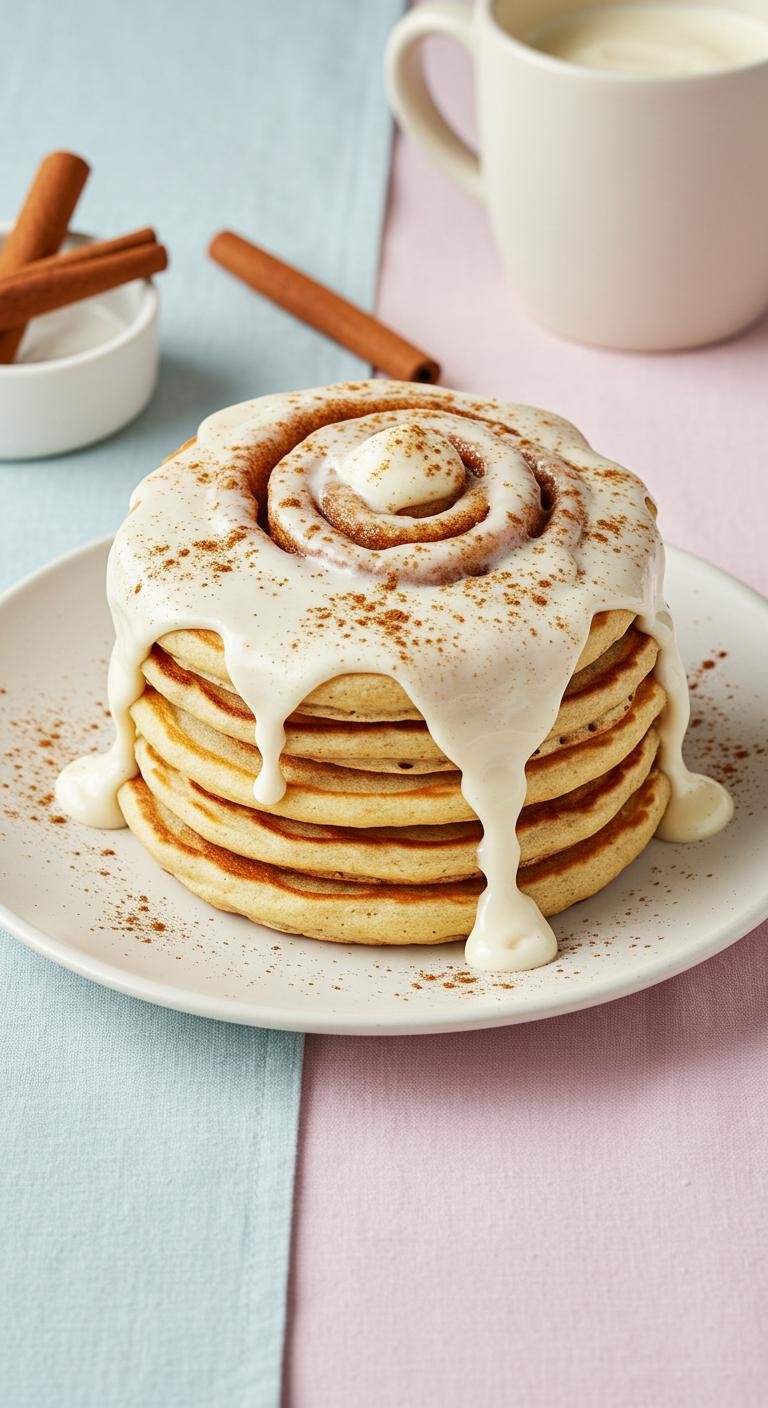 Indulge in the comforting flavors of cinnamon rolls in pancake form—what’s not to love?
