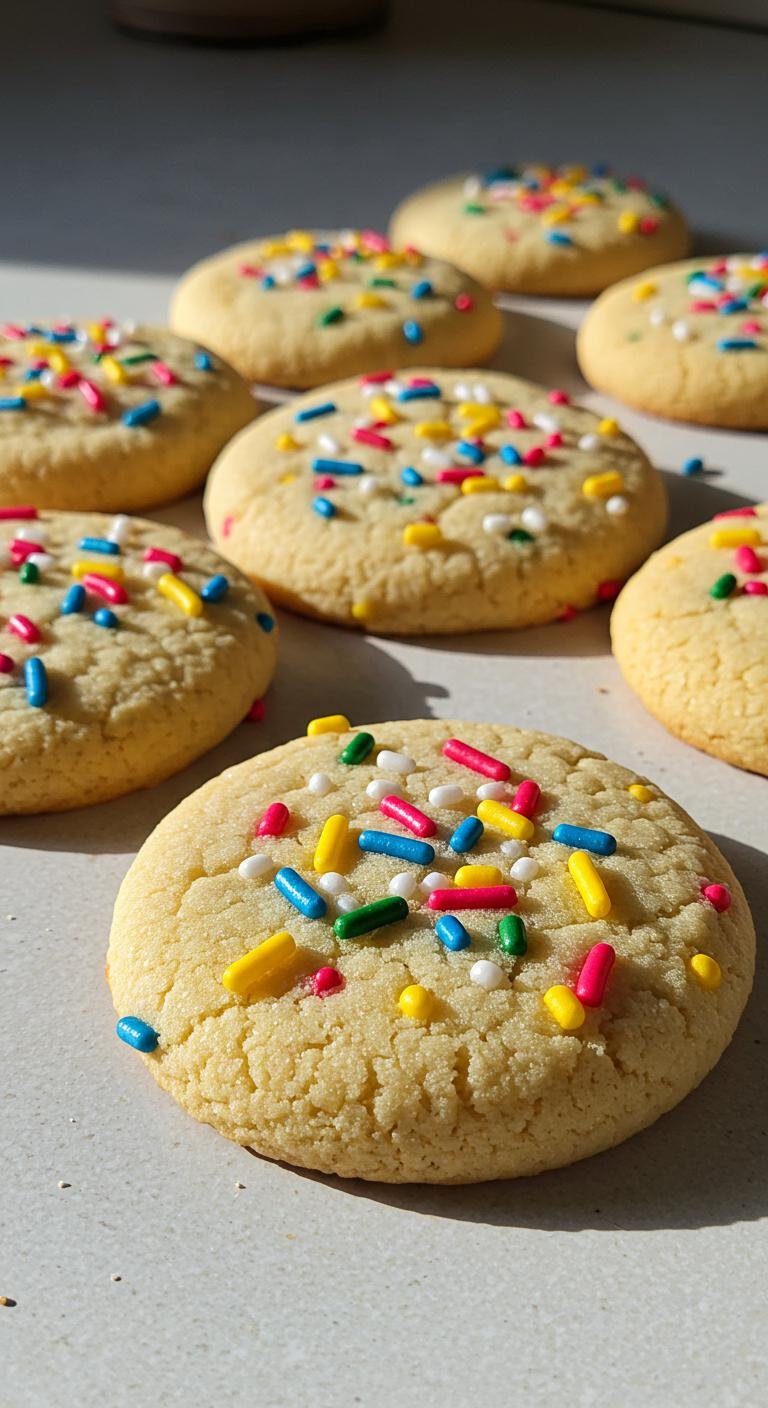 - Cream butter and sugar; beat in the egg. Gradually add dry ingredients and fold in sprinkles.
