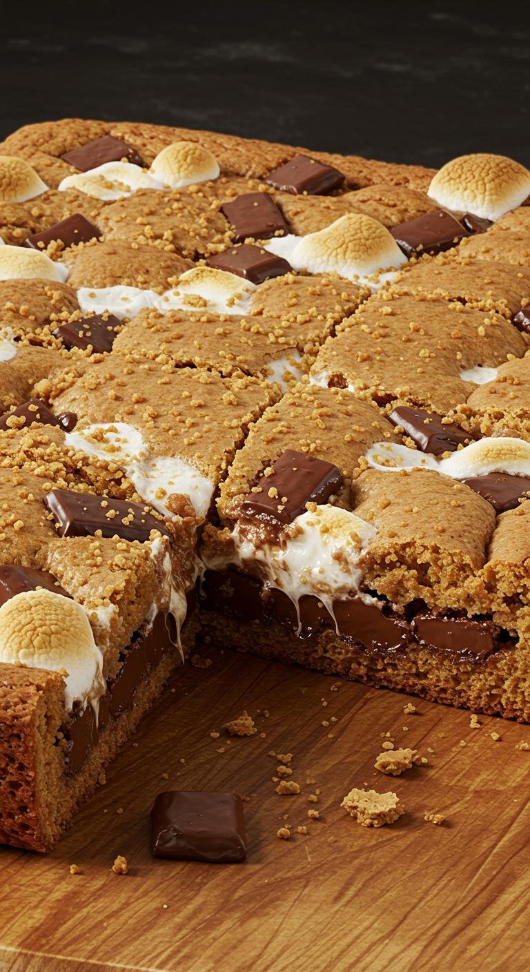 - Mix in the flour and baking powder, then fold in chocolate chips and marshmallows. Pour in the pan, sprinkle graham cracker crumbs on top, and bake for 20 minutes.
