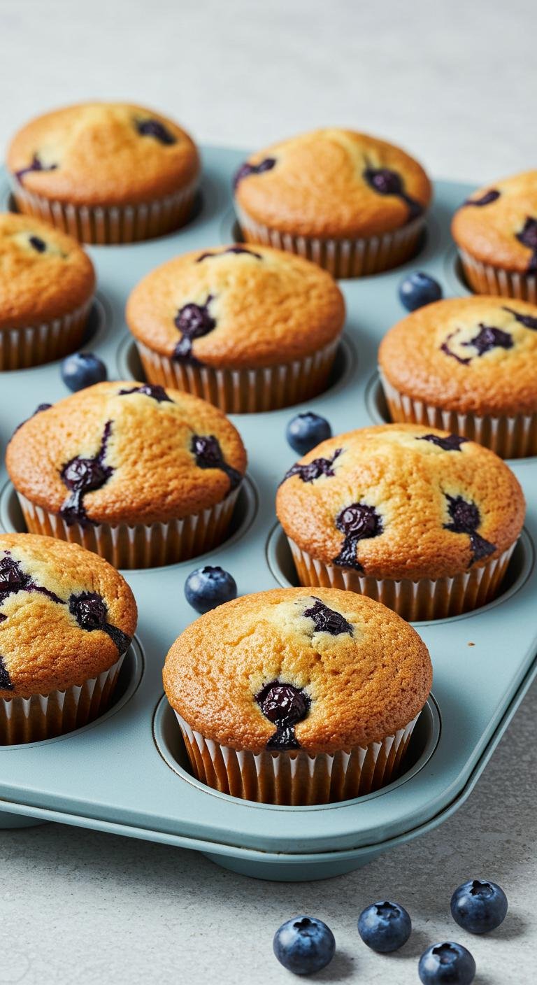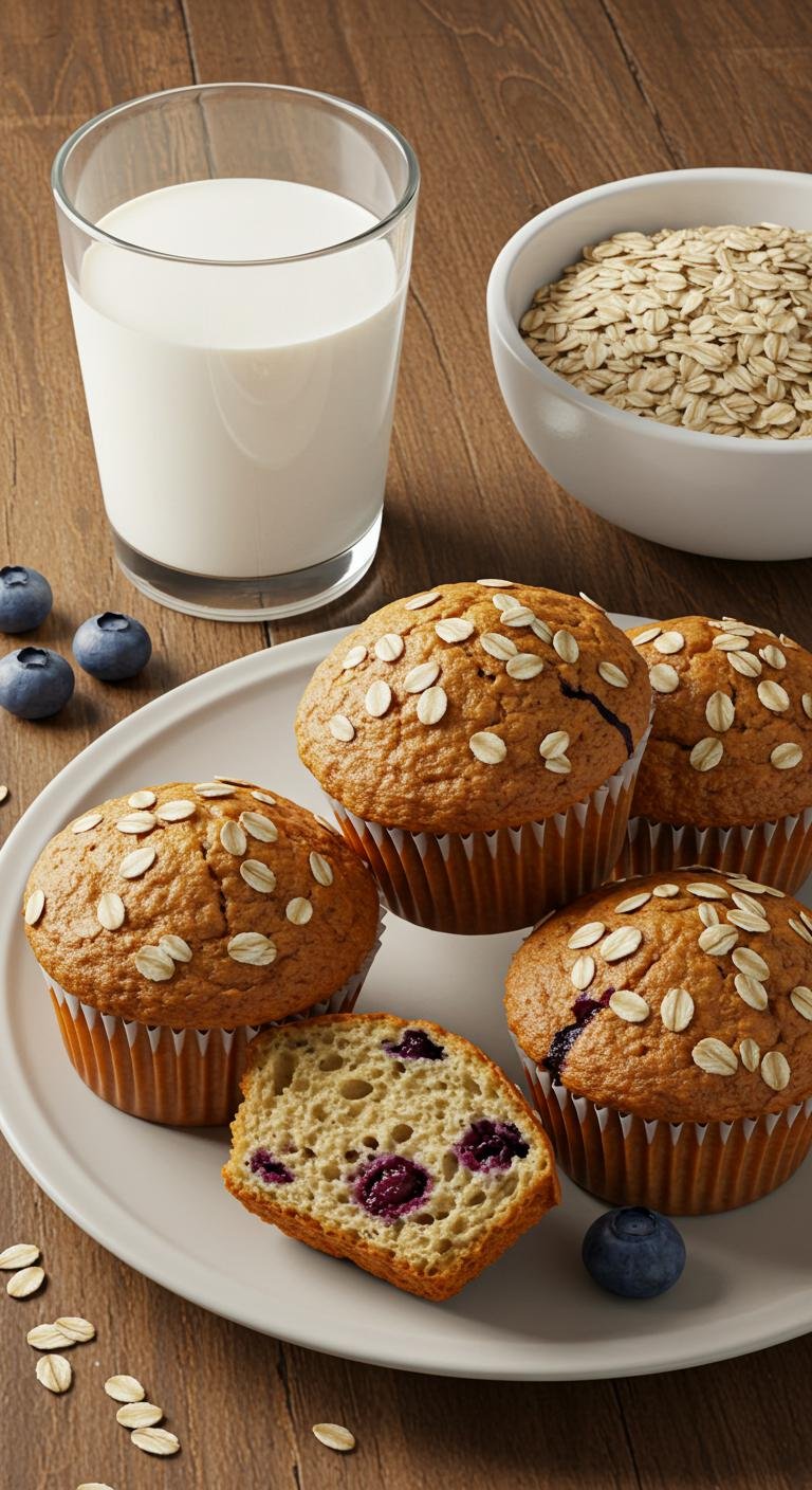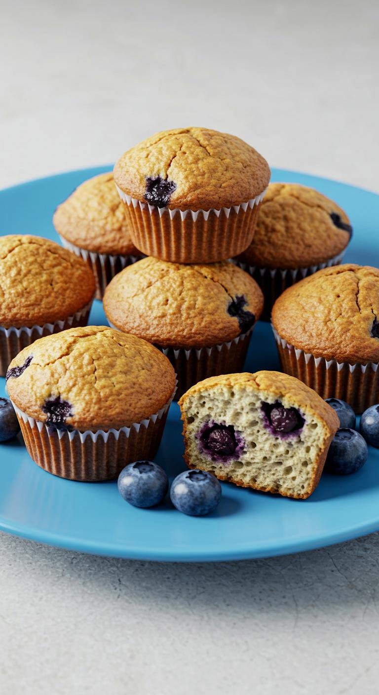 These muffins bring a delightful grainy texture that pairs beautifully with blueberries.