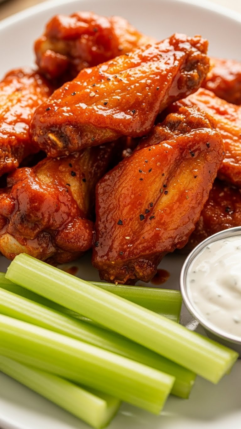 - Toss the hot wings in buffalo sauce and serve with celery and ranch.