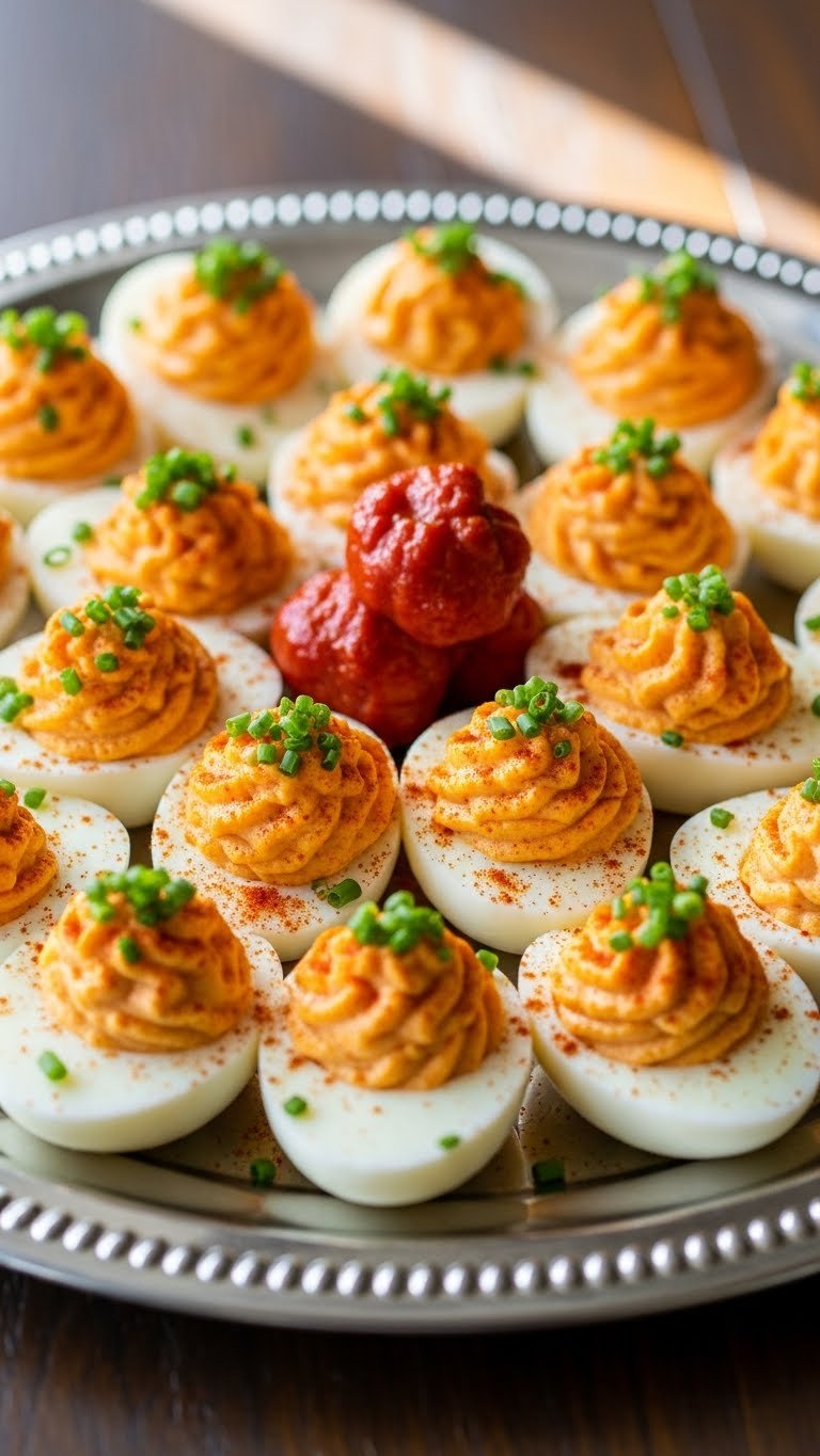 - Mix yolks with mayonnaise and buffalo sauce, then refill egg whites.