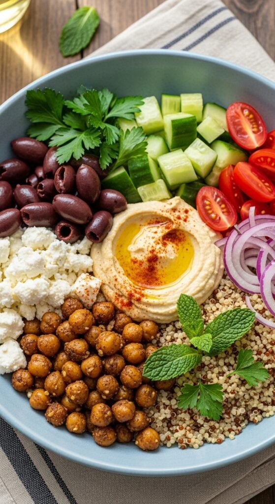 - Arrange greens, tomatoes, and cucumber in a bowl.