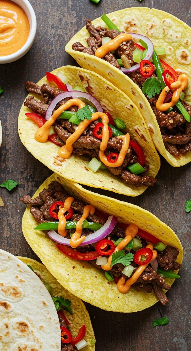 - Fill each tortilla with beef, cabbage, and cilantro.