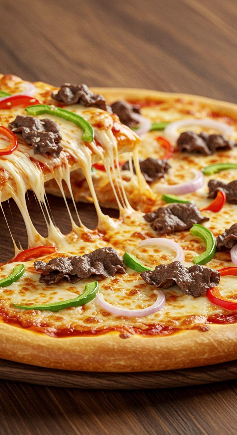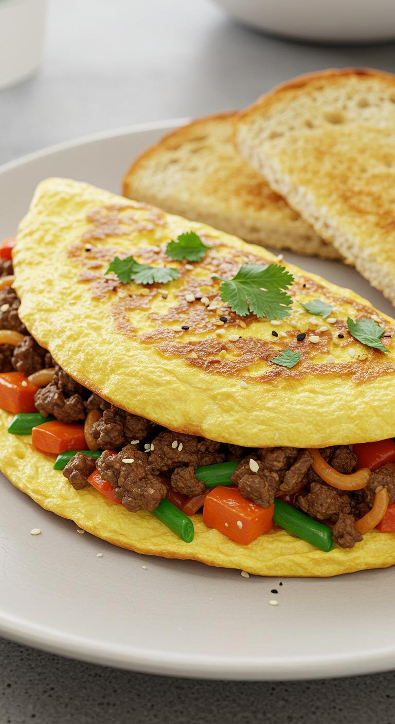 - Add cooked beef and bell pepper to one side, fold and cook until done.