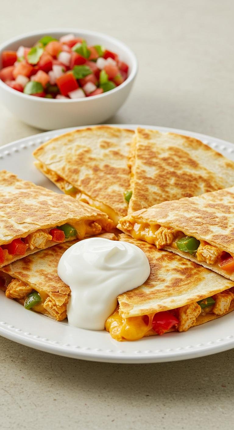 - Fill tortillas with butter chicken, cheese, and bell pepper. Fold and grill until golden brown.