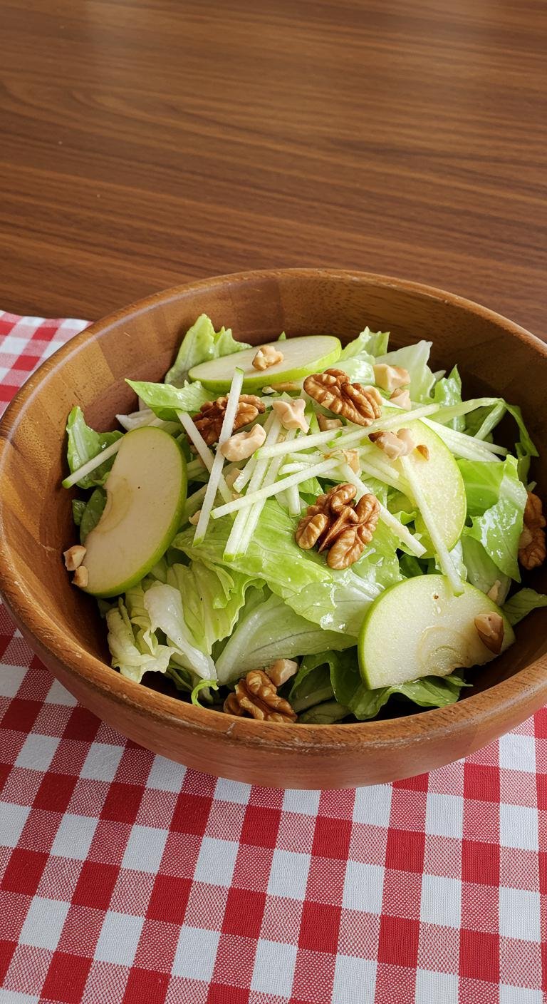 - In a large bowl, combine cabbage, apples, and walnuts.