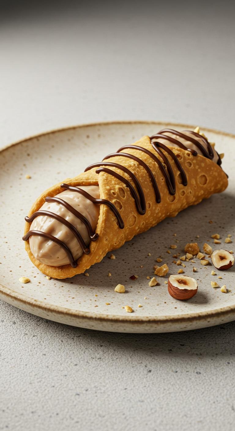 - Fill the cannoli shells with the mix and dip in crushed hazelnuts.