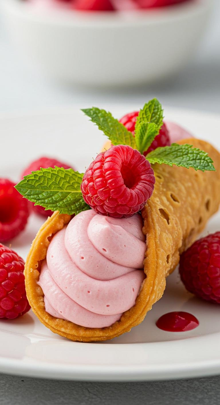 - Blend ricotta with raspberry puree and powdered sugar until smooth.