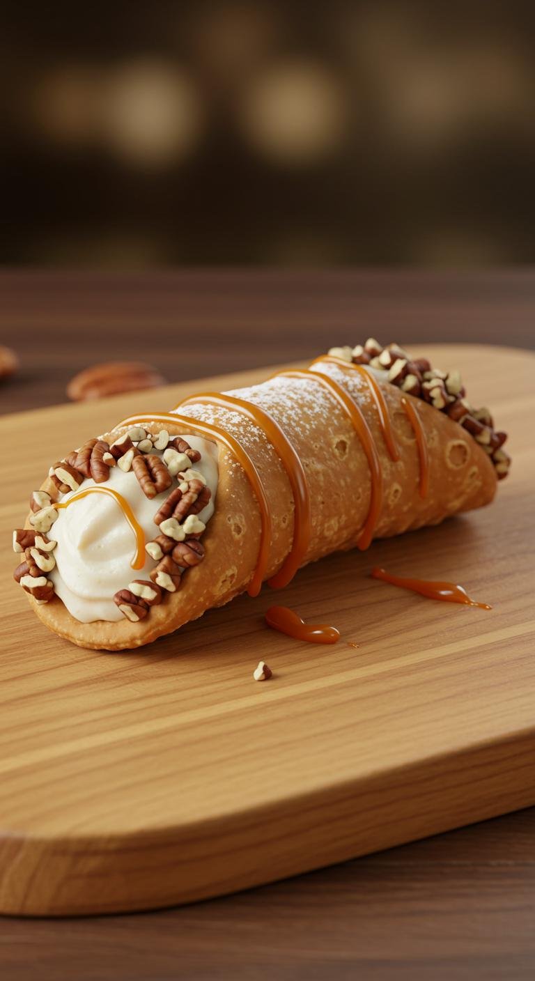- Fill the cannoli shells and sprinkle with chopped pecans.