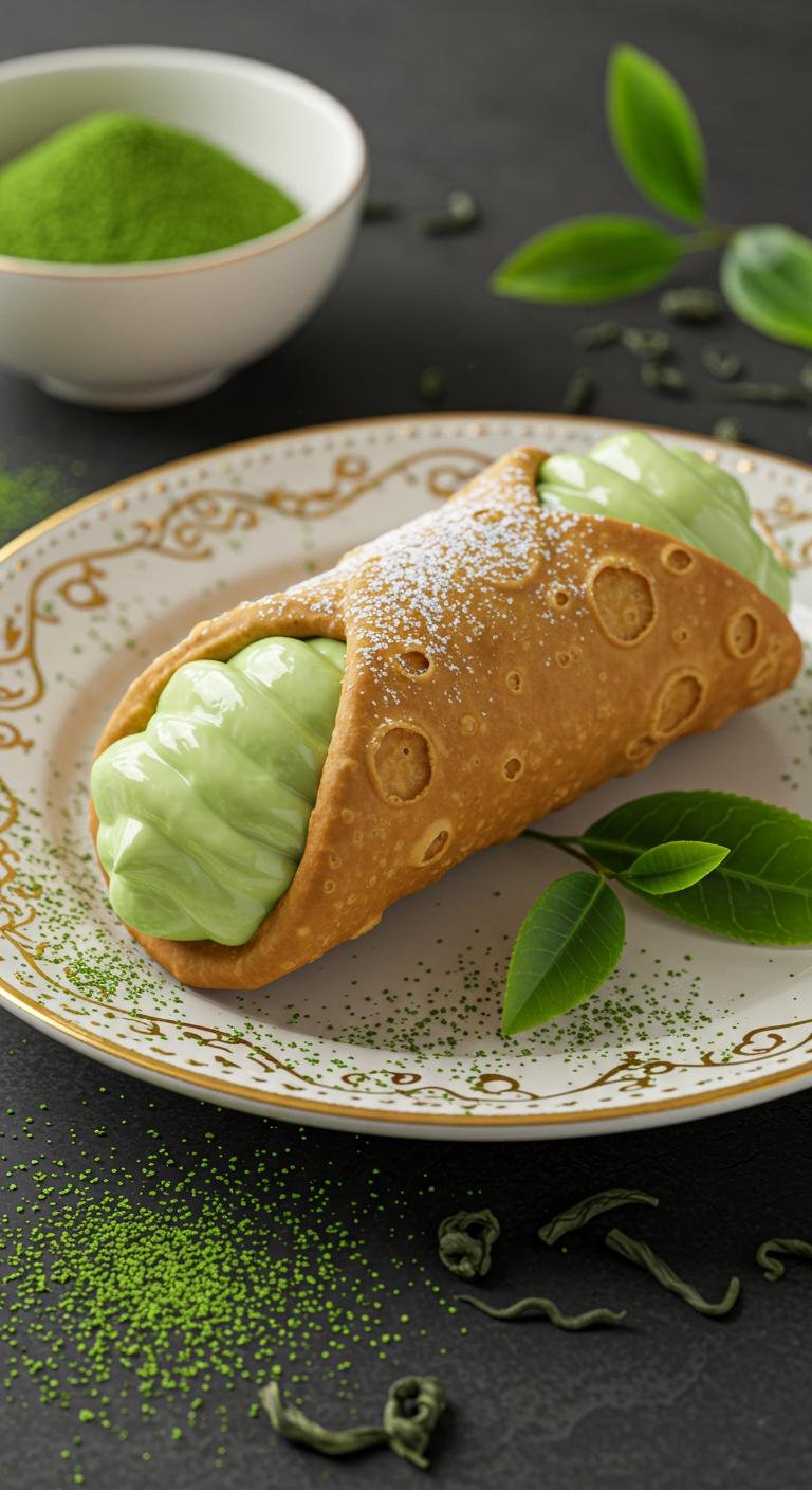 - Blend ricotta with matcha powder and powdered sugar until well mixed.