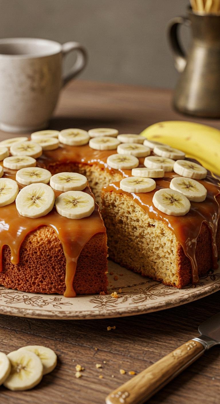 This cake combines sweet bananas and rich caramel for a delightful treat.