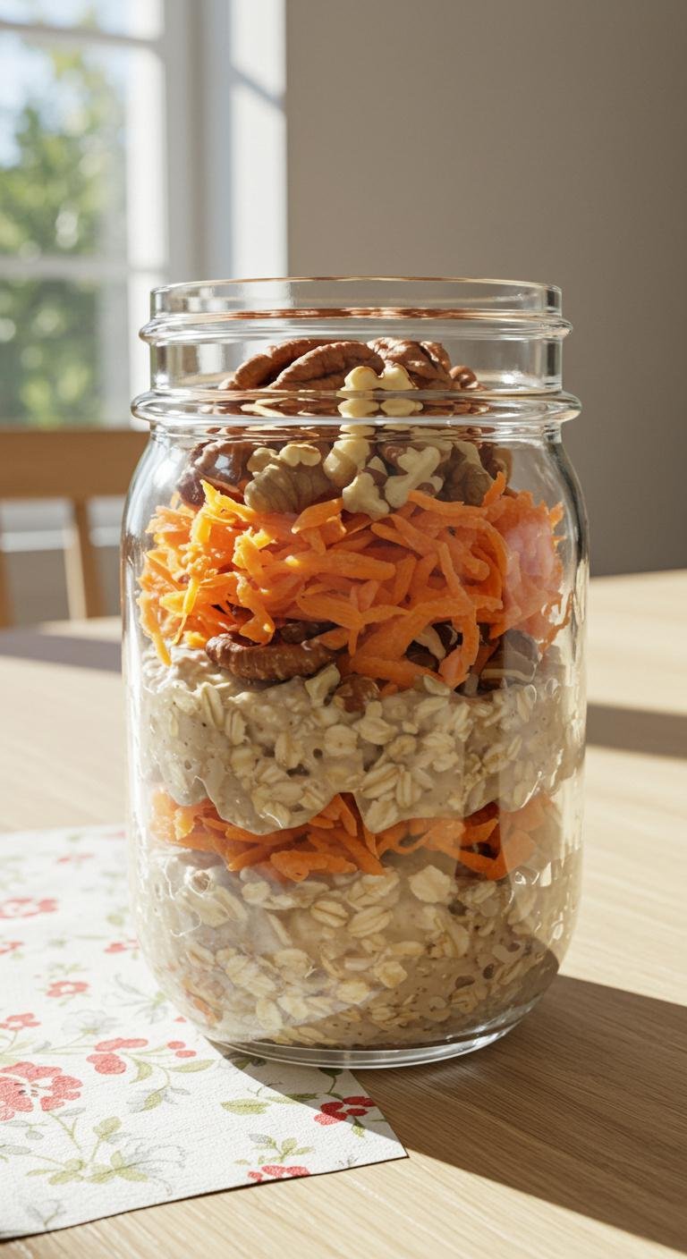 - In a jar, combine oats, almond milk, grated carrots, cinnamon, and honey.