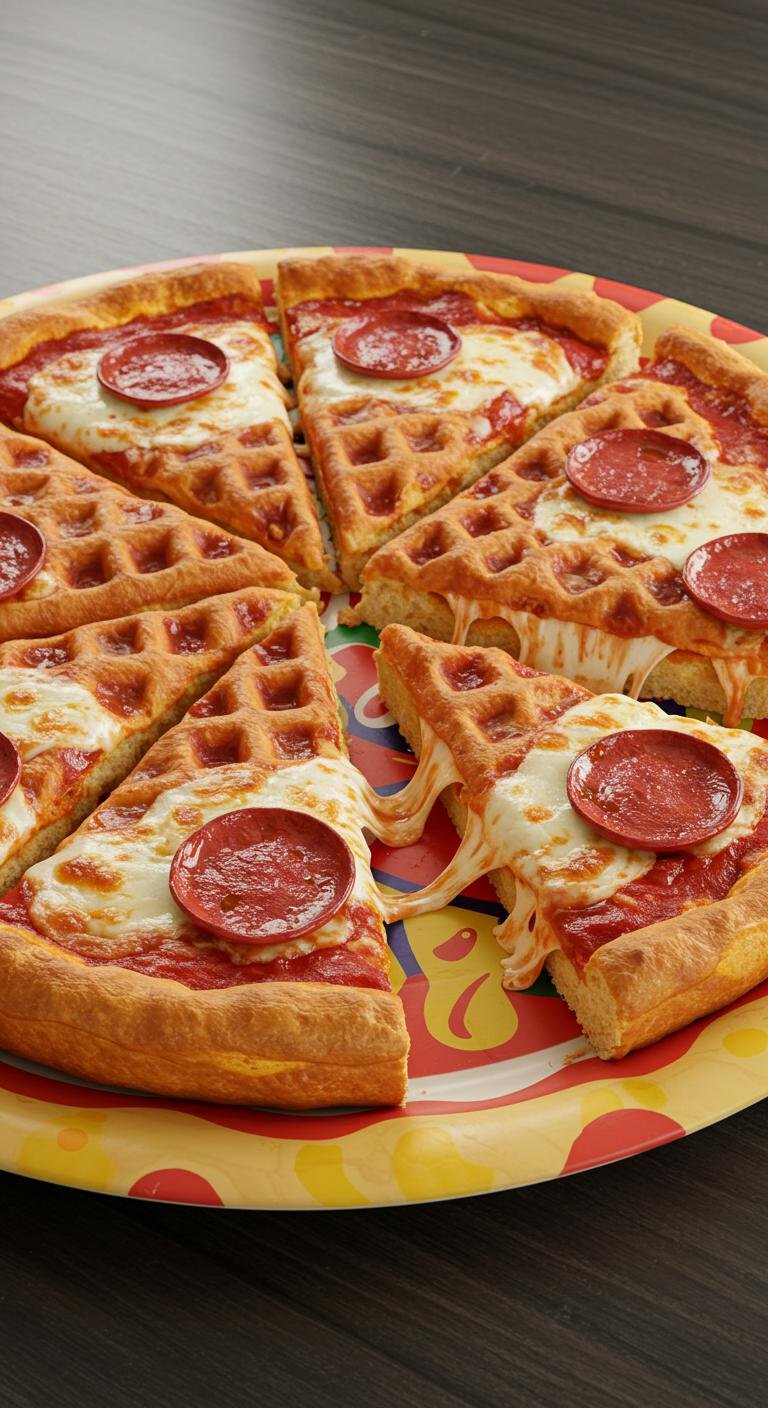 - Pour the mix into the waffle maker and place pepperoni on top before closing. Cook until crispy!