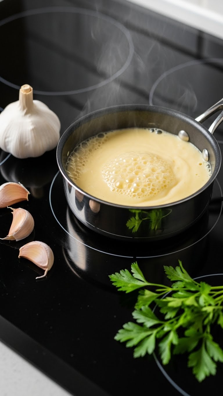 - In a saucepan, heat the heavy cream over medium heat until it simmers.