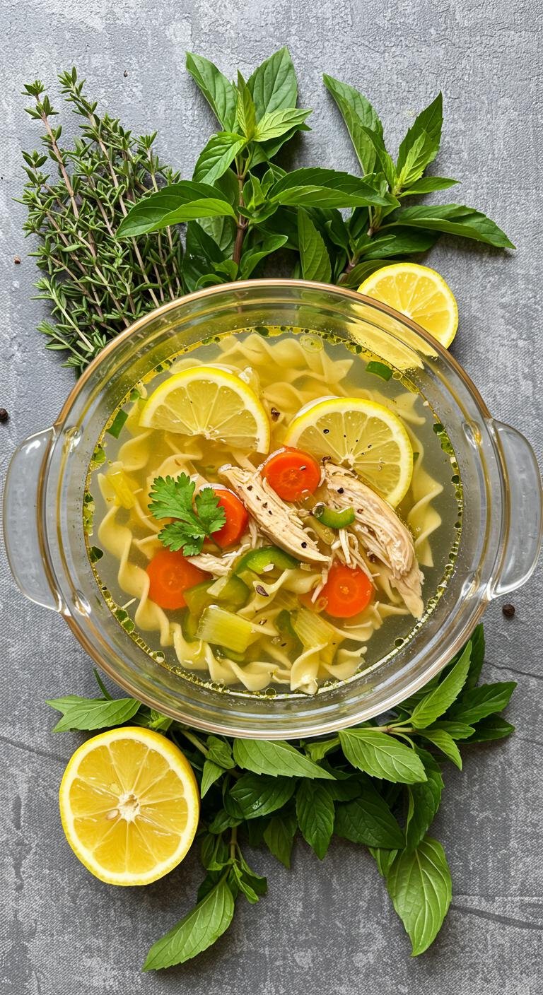 - Heat the chicken broth in a pot, then add chicken, lemon juice, and zest.