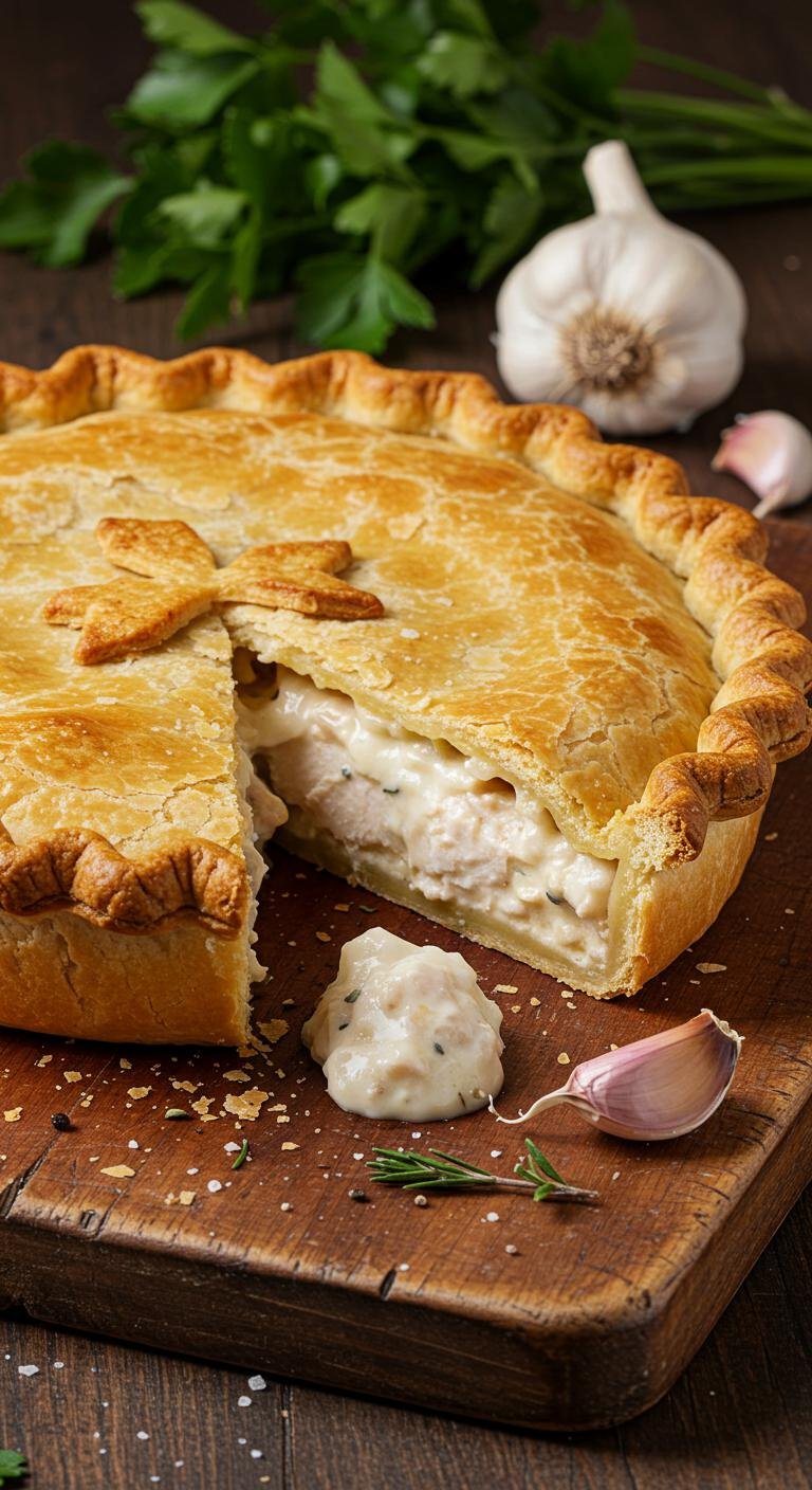 Indulge in the creamy goodness of Alfredo sauce wrapped in pie.