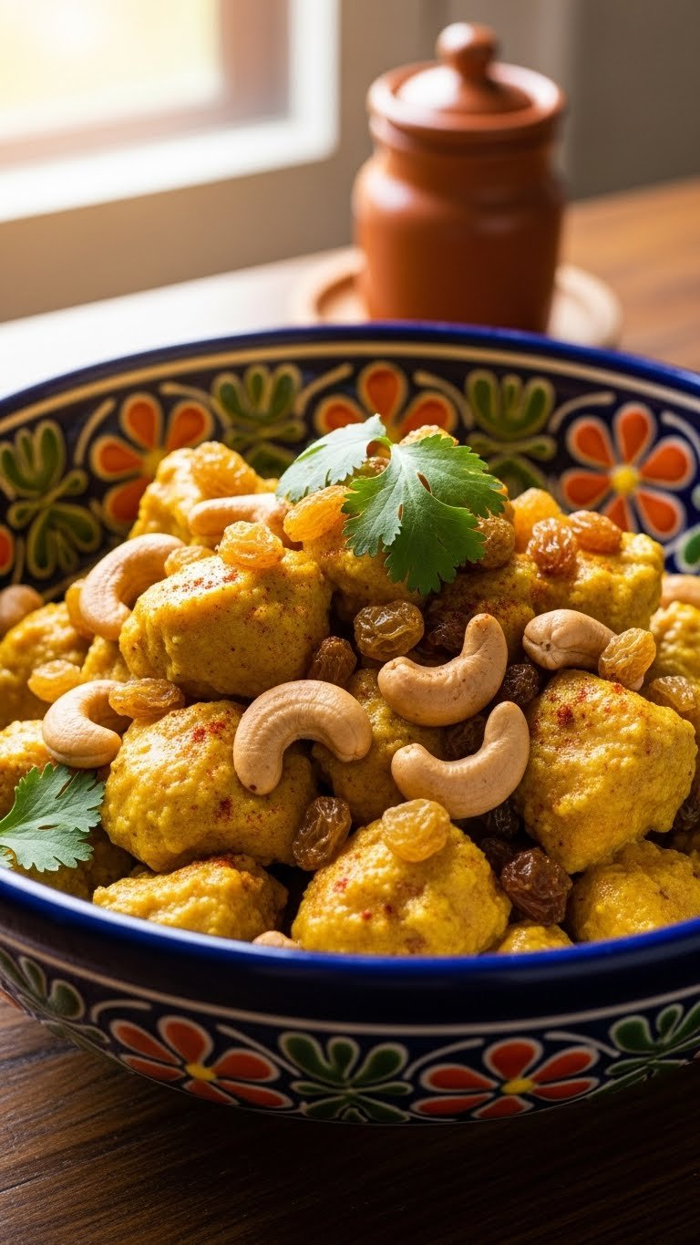 - Mix chicken, yogurt, curry powder, raisins, and cashews in a bowl.
