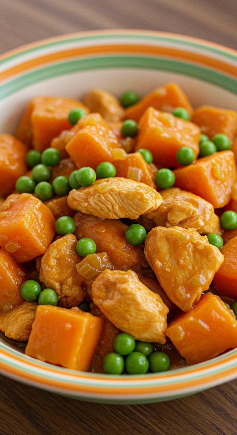 - Add sweet potatoes, peas, and broth; season with paprika.