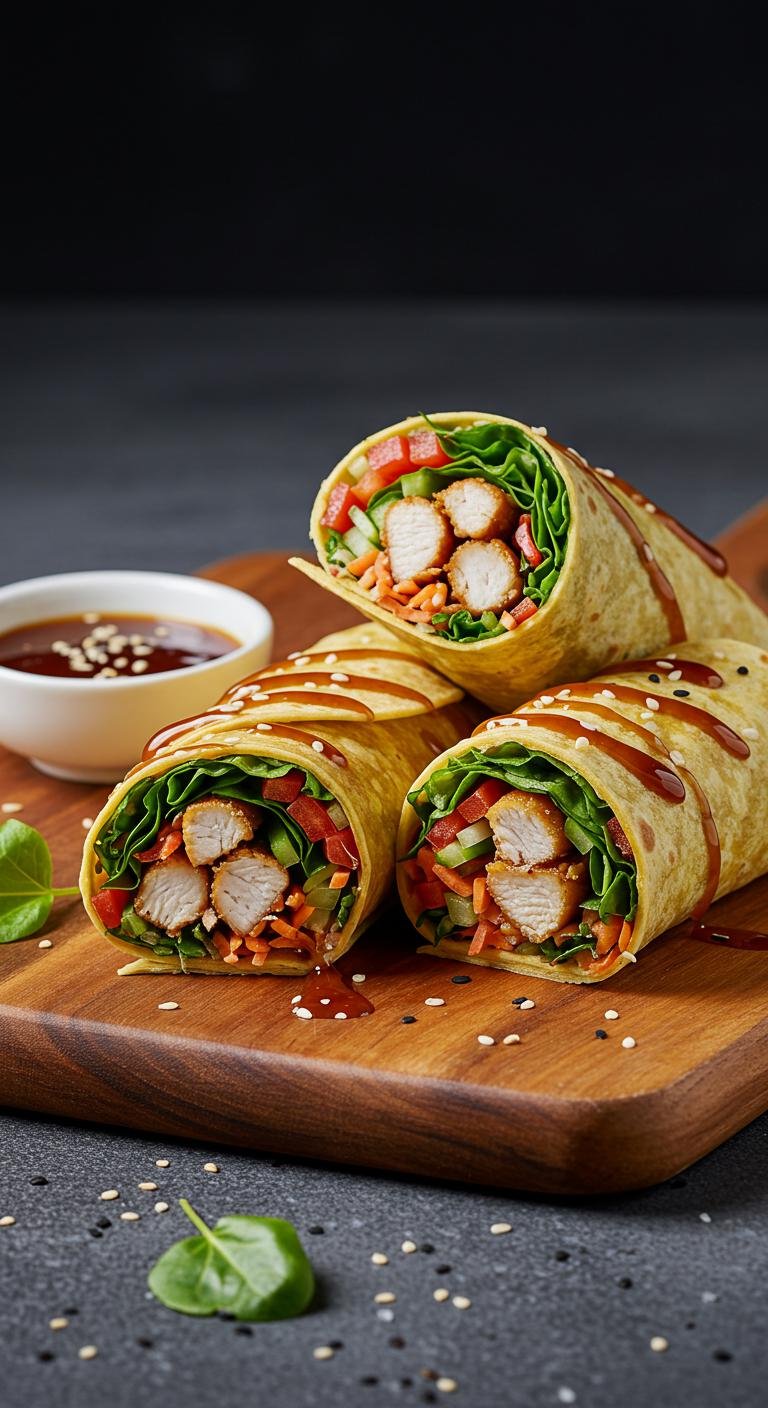 - Lay the wrap flat, layer with lettuce, carrots, and sliced chicken.