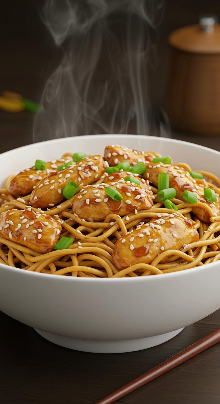 - Stir in teriyaki sauce and cooked noodles; toss until heated through.