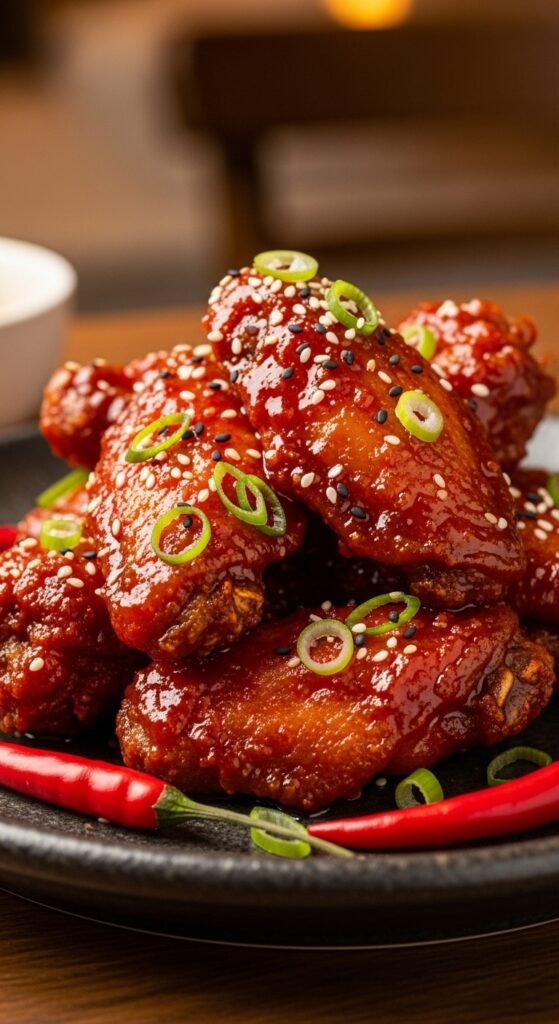 - Mix gochujang, honey, and vinegar; coat wings evenly.