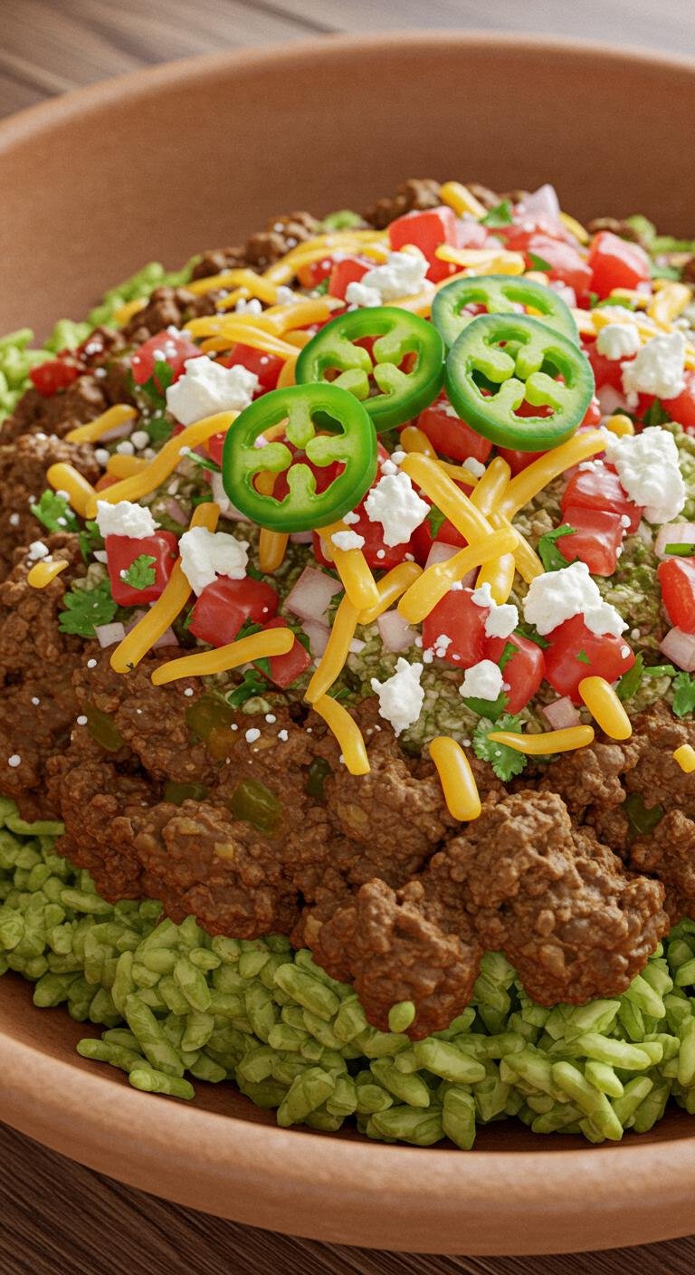 - Place the rice in the bottom of the bowl and spoon the cooked ground beef on top.
