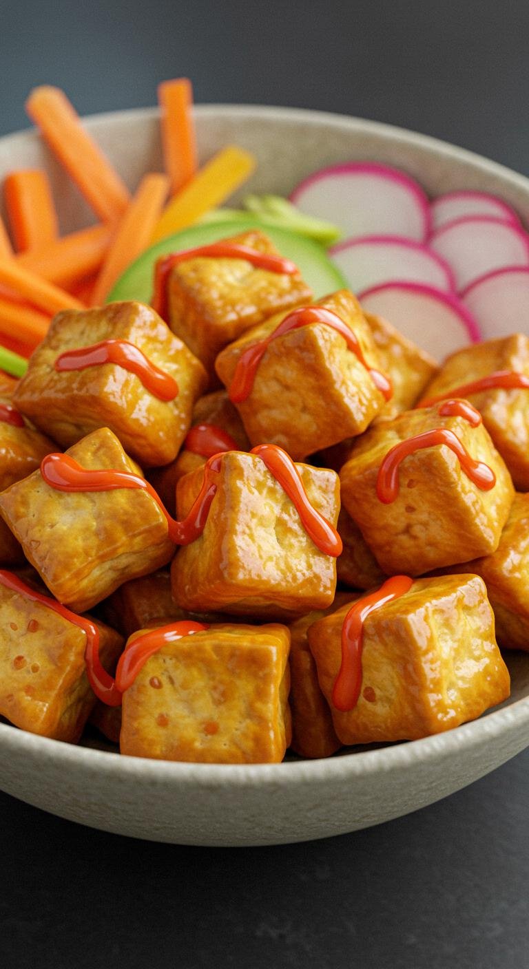 - Top with carrots, radishes, and drizzle sriracha for heat.