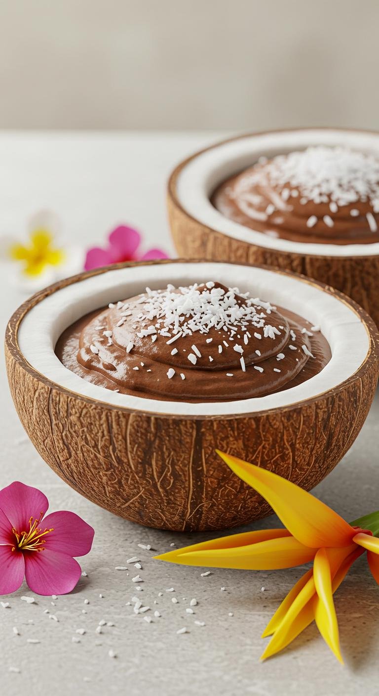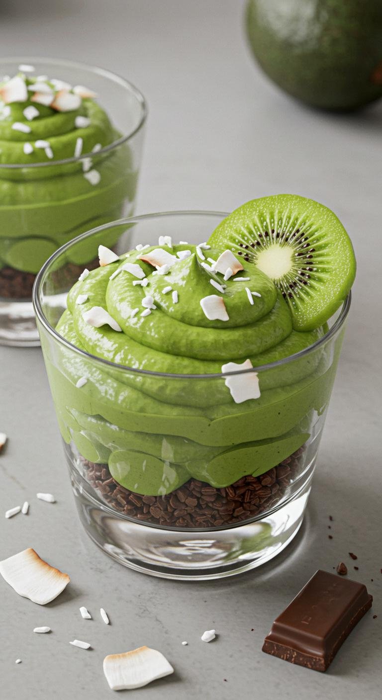 - Blend avocados, cocoa powder, maple syrup, and almond milk until smooth.