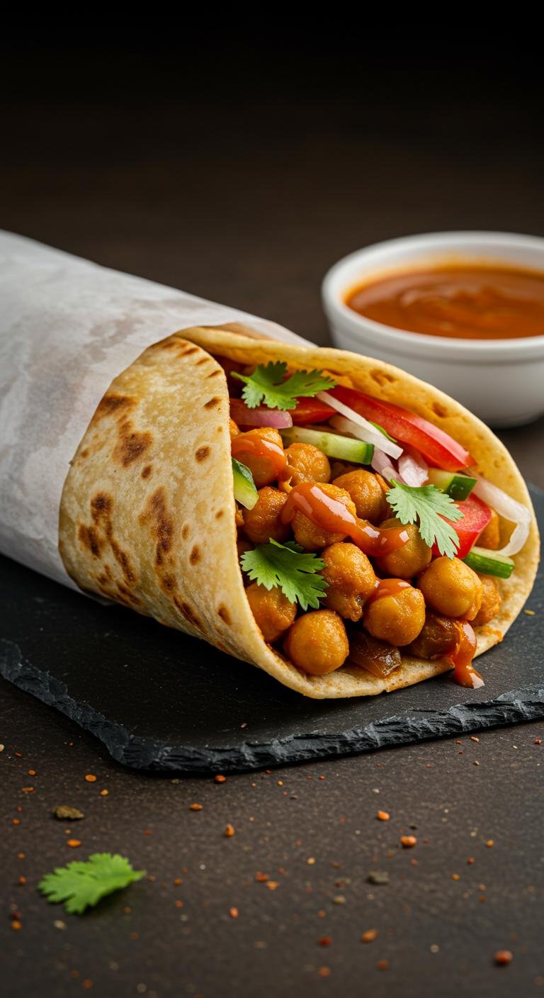 - Warm tortillas on a hot pan; layer with lettuce, chole, and veggies.