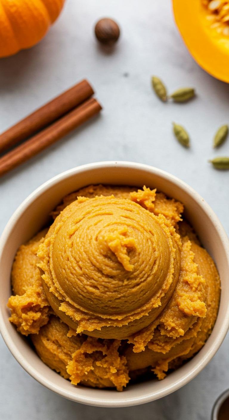 - Add pumpkin and flour, then mix in pumpkin spice.