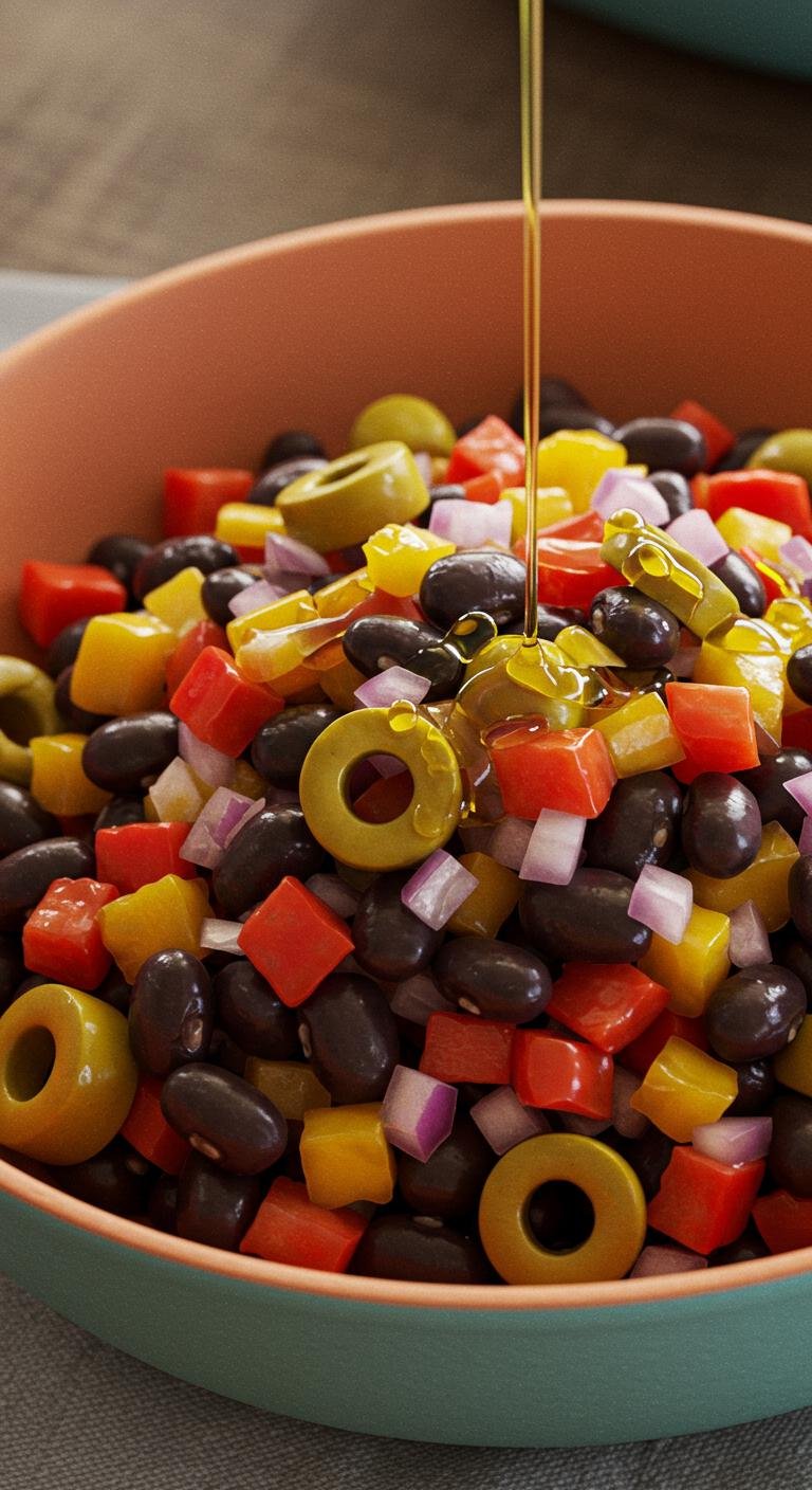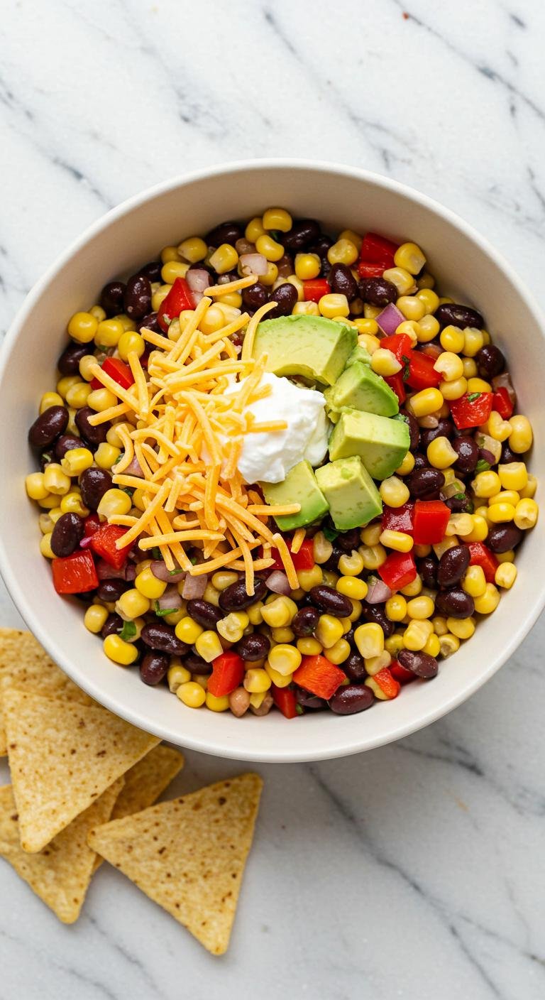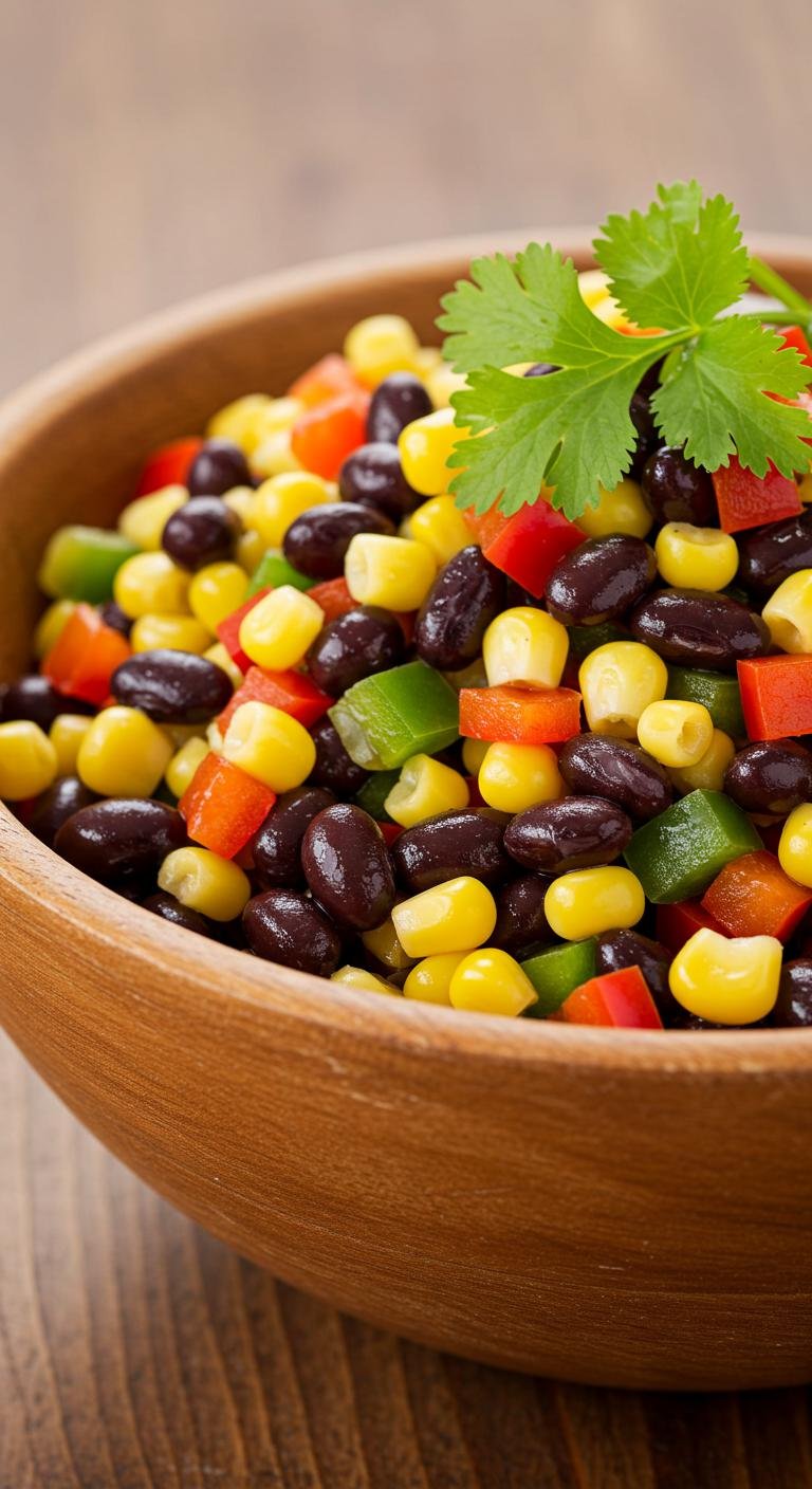 - Mix corn, beans, and bell pepper in a large serving bowl.