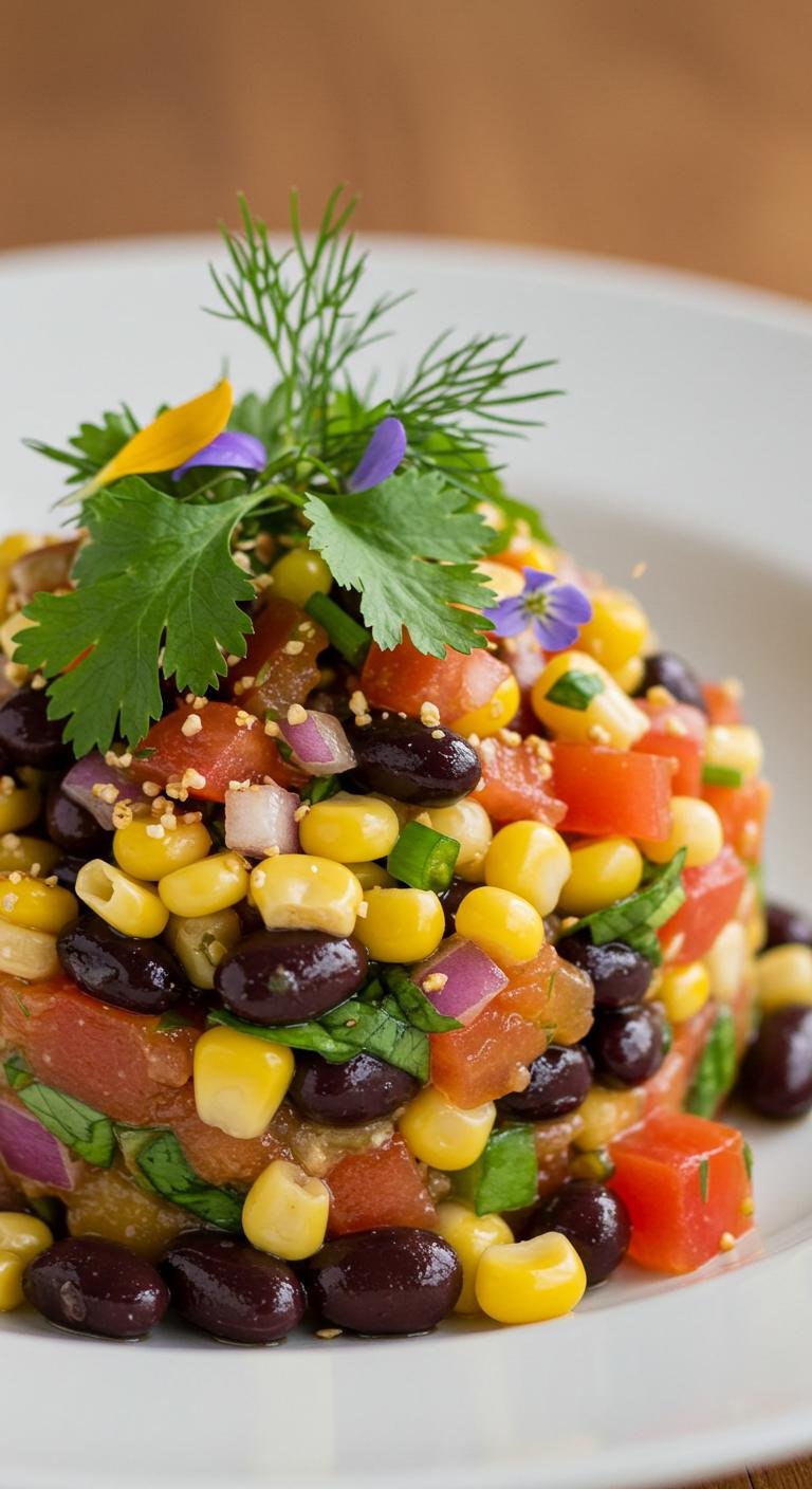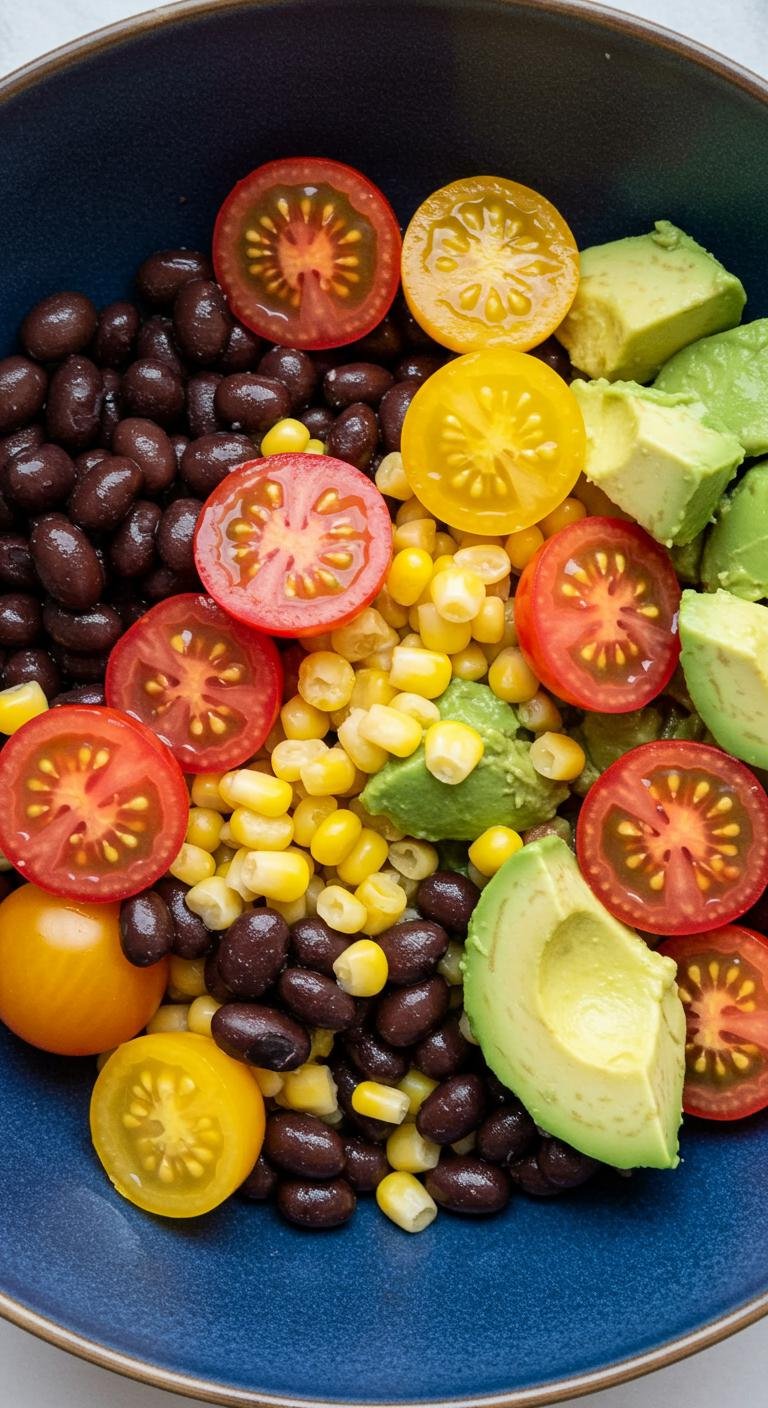 - Mix black beans, corn, tomatoes, and onion in a bowl.