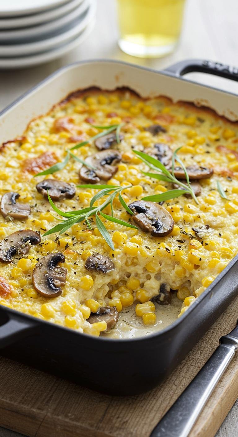 - Sauté mushrooms in butter, then mix with cream corn and thyme.
