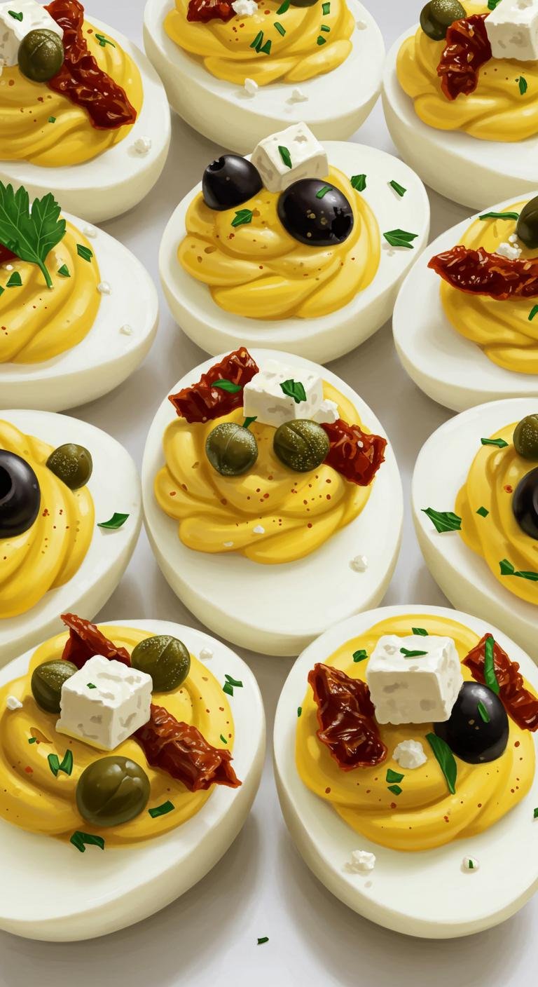 - Combine yolks with Greek yogurt, feta, olives, and oregano.