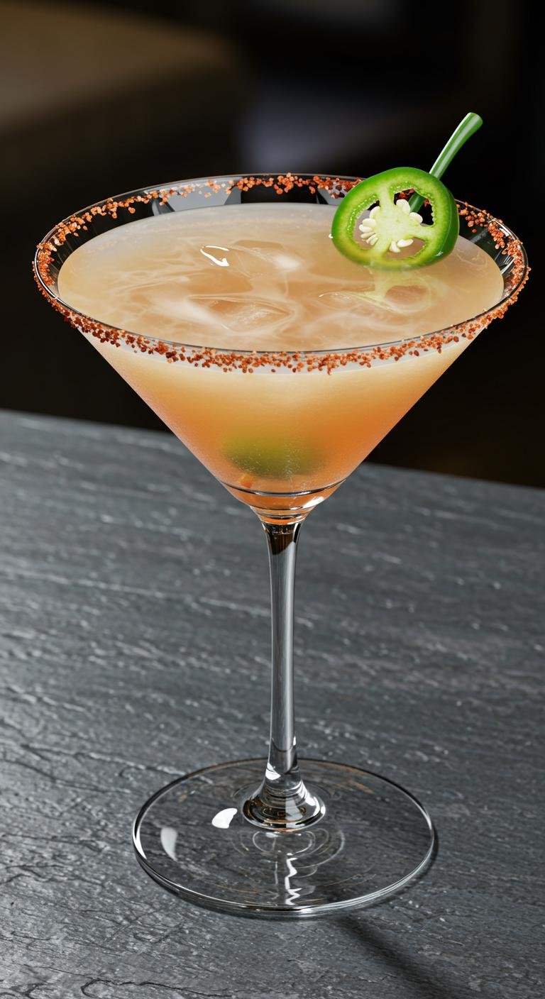 - Combine vodka, dry vermouth, olive brine, and jalapeño slices in a shaker filled with ice.