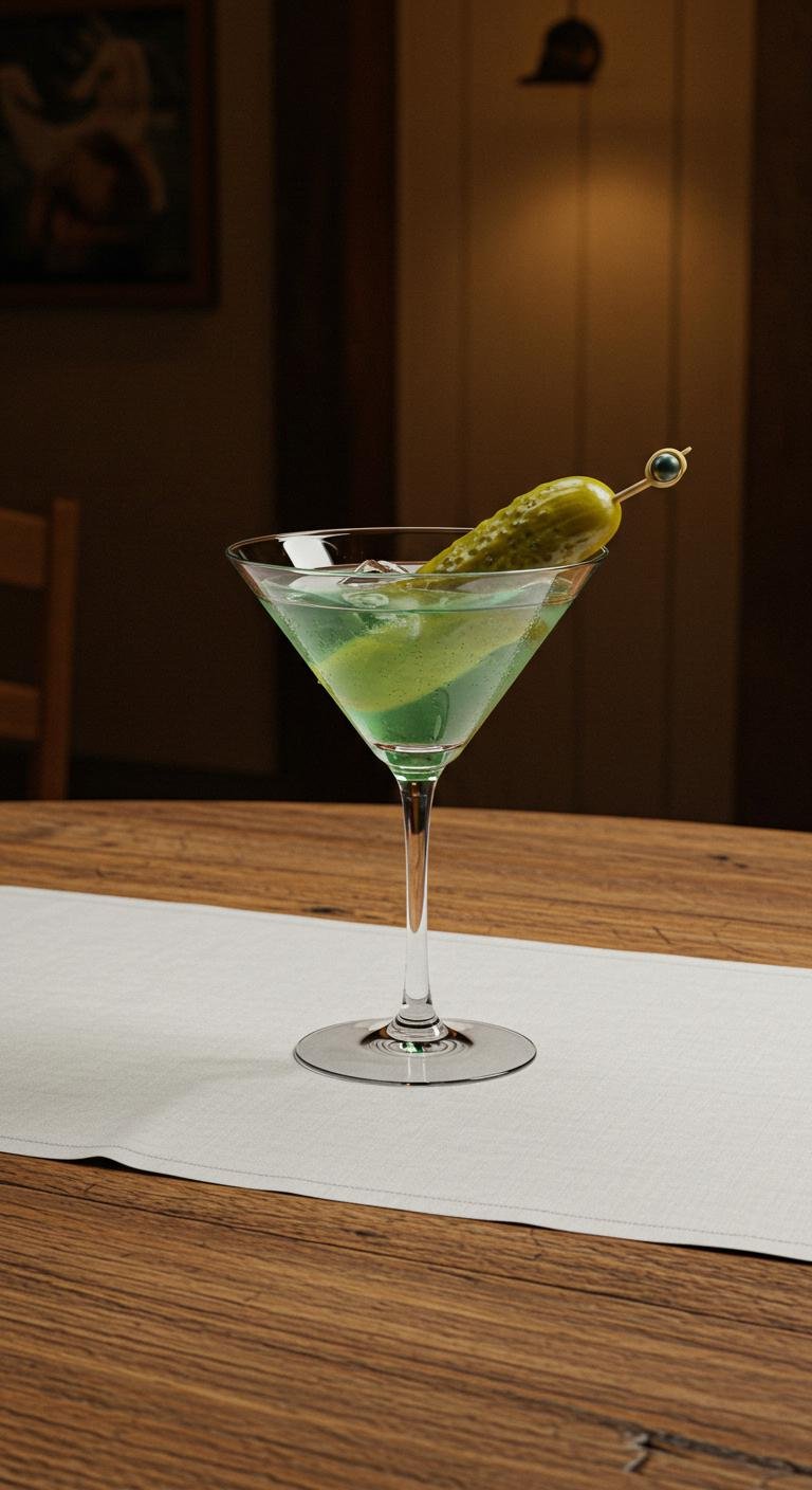 - In a shaker filled with ice, combine vodka, dry vermouth, and pickle brine.