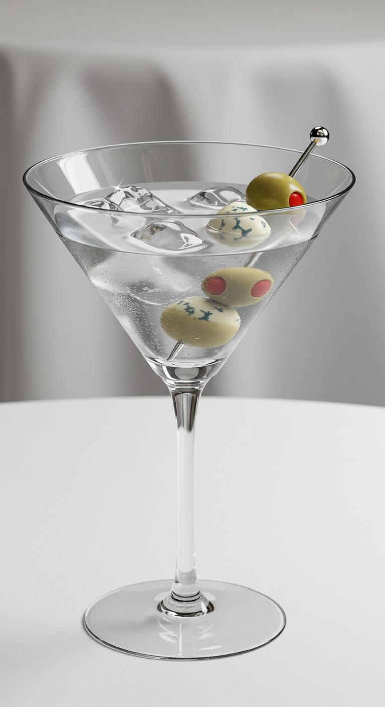 - Shake vodka, dry vermouth, and olive brine with ice.