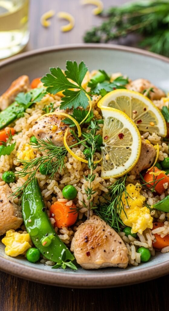 - Combine the rice, vegetable broth, lemon zest, and thyme in a pot.