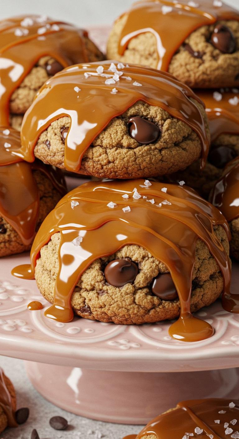 - Drop dough onto sheets, drizzle caramel on top, and sprinkle salt. Bake for 10-12 minutes.